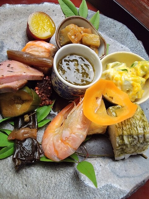 地元茨木市で捕獲された猪や鹿、地元の畑で育てた自家製野菜にこだわっております。和食の技法で会席料理や単品料理もご用意できます。またパスタやローストされた鹿や猪等の洋食料理もござ いますます。本格焼酎や日本全国から厳選された日本酒も各種取りそろえております。合わせて楽しんで頂ければ幸いです。御家族様から会社の集まりまで幅広くご利用になれます。テイクアウトも受け付けております。インボイス登録店です。