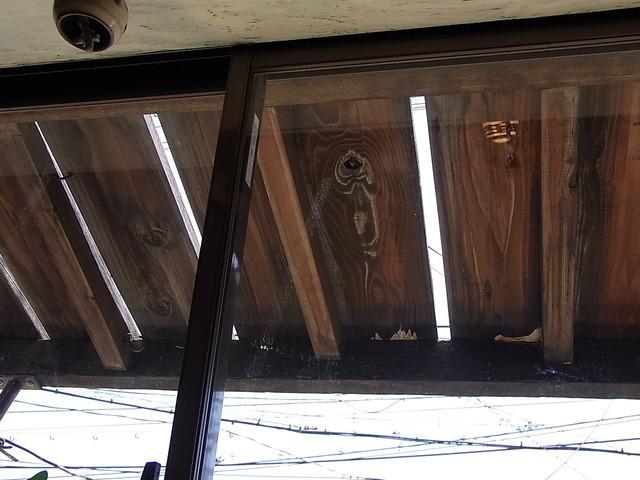 木製の庇のスリットを通る日の光を…