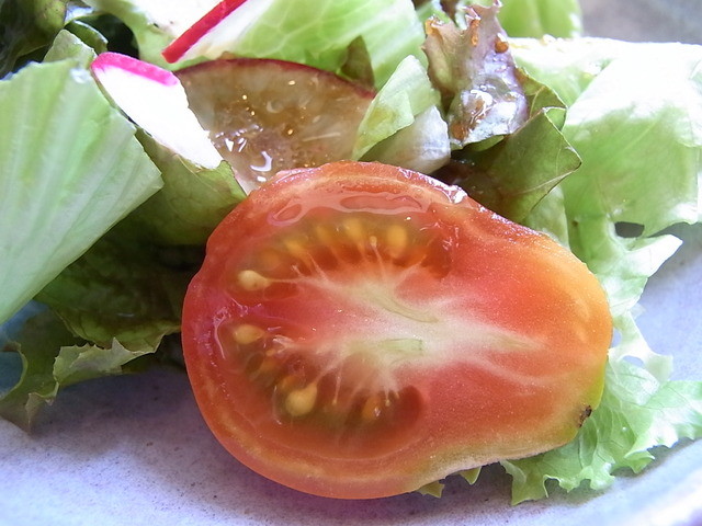 サラダのミニトマトが変わったカタチ♪