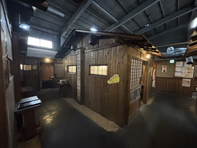 古い工場の中に昭和時代の軒の風景?をイメージさせる、うどん屋さん。