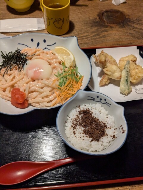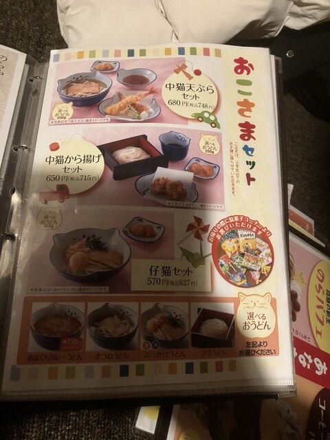 ねこのキャラクターがかわいいうどん屋さんです。近所にあって、全室個室で広いので重宝しています。おうどんはもう少し冷えているとより美味しいと思いました。わらび餅が美味しいのでお持ち帰りしました。ごちそう...