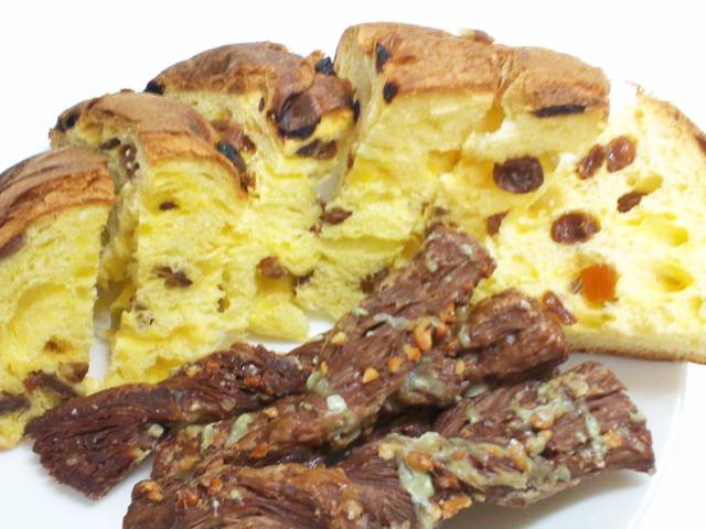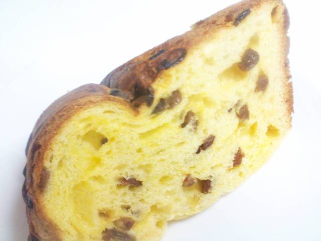 パネトーネは、ほんのり甘くってフワフワ、レーズンが色々入ってて嬉しい♪