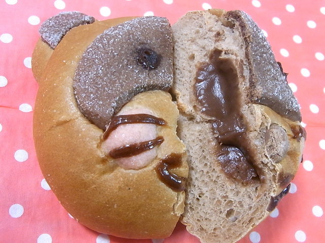 頭の部分にチョコ、身体の部分にカスタードが控えめイン。