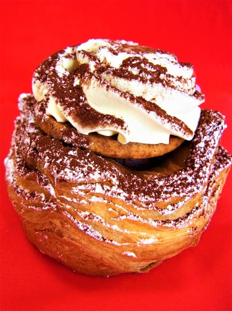 マスカルポーネクリームとチョコ味の濃厚なクリームとが、