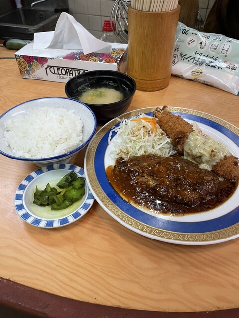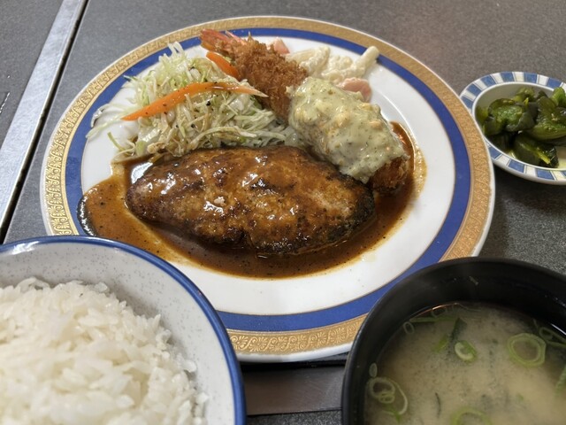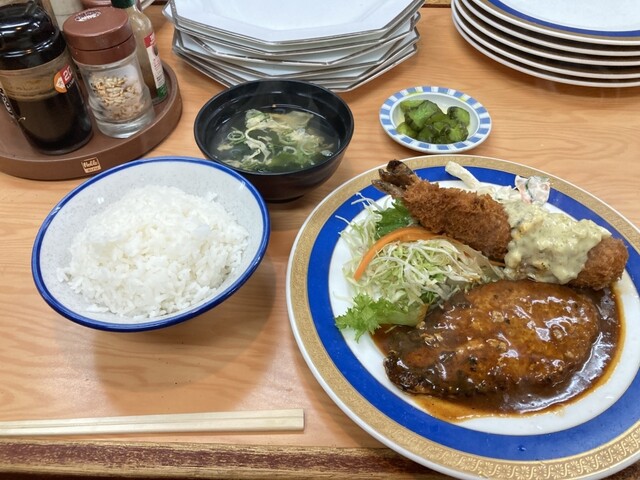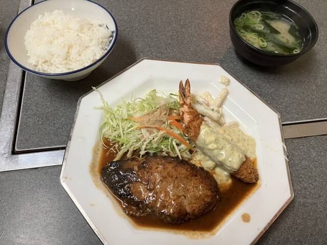 安くて種類が豊富な定食屋さんで、店主が1人で切り盛りしているローカル感たっぷりのお店。いわゆる“きたなしゅらん”系ですが、地元の人に愛されている雰囲気があります。エビも意外と大きくて満足感はあり、味は...