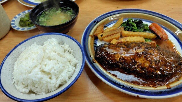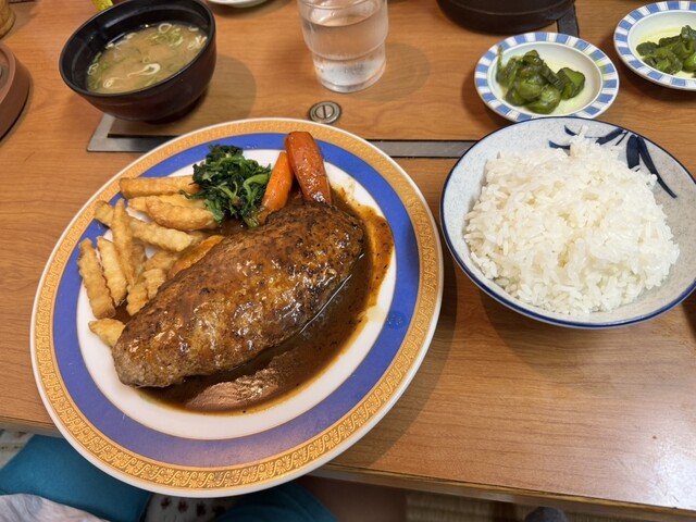 ハンバーグは少し小さめ?いやいや、食べると肉汁と濃いめの味でパンチがきいてます