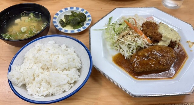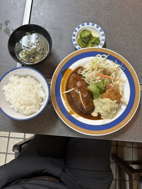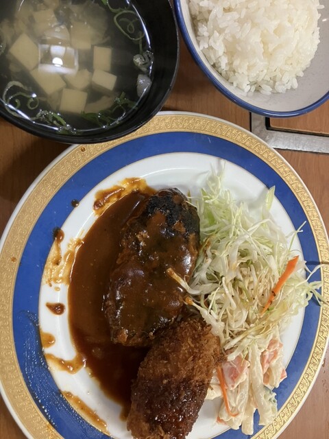 日替わりランチ、ハンバーグとコロッケで680円は、このご時世破格です。