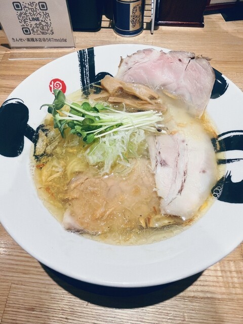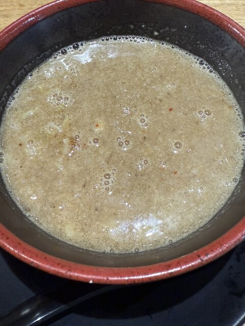 土曜日1130頃に列に接続。待ち前3名でしたがちょうど自分の前で少し待ちが伸び、17分後入店。とても綺麗な麺線です。スープはとても濃厚で、ペーストのような食感です。味変したくなり、白胡椒とあり高菜漬け...