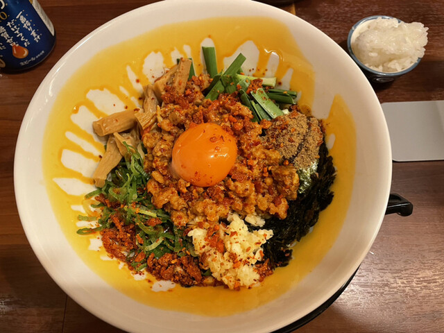 病院の通院でしばらく高槻に行っていたのでまぜそばが気になりこちらのお店に来店しました。 目的通り【台湾まぜそば】を注文! 15分ほど待ち着丼! 麺の方は中太ストレ... 詳細を見る