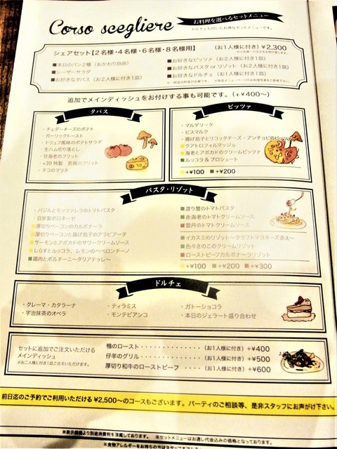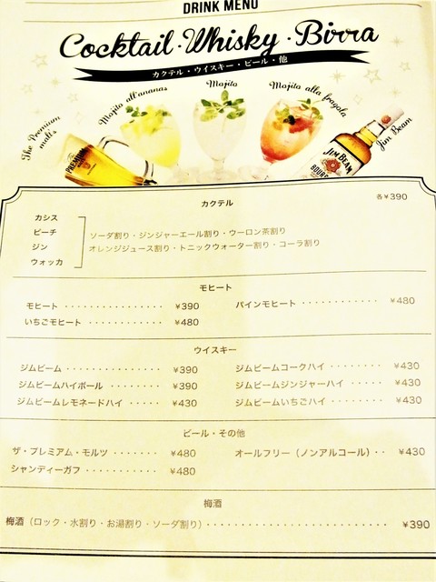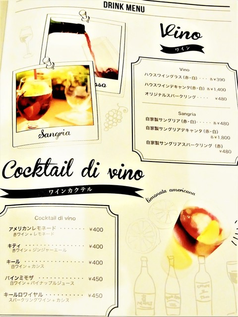 | ドリンク | ワインあり、カクテルあり、ワインにこだわる、カクテルにこだわる |
