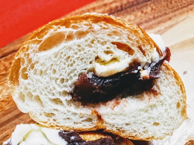 ソフトフランスパン生地につぶあんとバターを包み、岩塩を振りかけて焼き上げました・・・とのコト