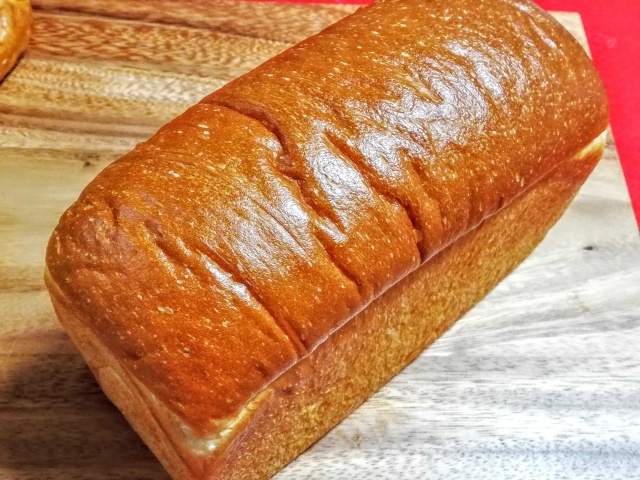 断面積は小さいけど長いので、通常の1斤サイズよりボリューミー。あまり食パンぽくない、ずっしり重たい密な生地。やや甘め。ハリのあるクラストだけど、固くはない。クラムは少しモソモソする。腹持ちが良い。