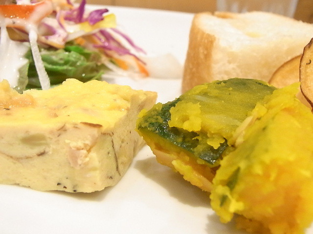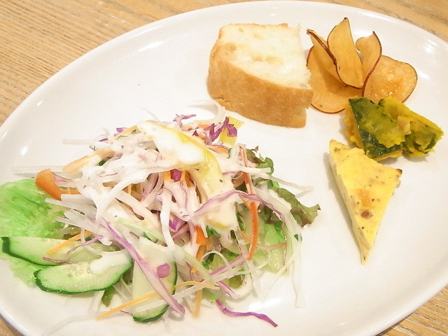 サラダ・オムレツ・南瓜・薩摩芋チップス フォカッチャはお代りOK☆♪
