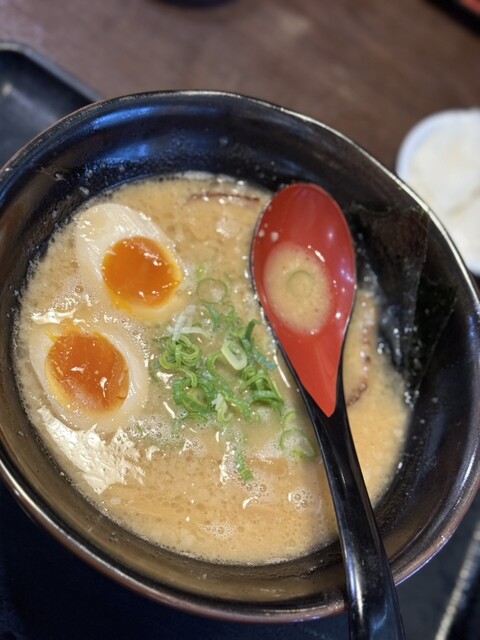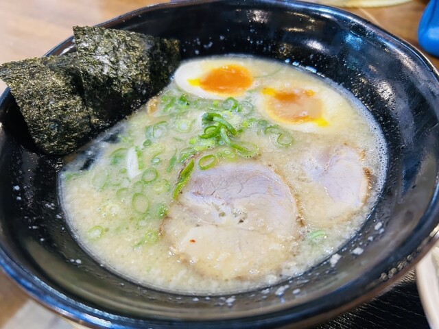 これは、まさに豚骨ラーメンの真髄を極めた一杯!スープ表面のきめ細やかな泡立ちが示す通り、豚骨の旨味が凝縮されたクリーミーで濃厚な味わいが特徴的です。それでいて後味...