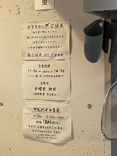13:30頃に到着し、お店に入れたのは14時頃でした。14:30まで営業ですが、14時ごろには麺が無くなり、営業終了していました。