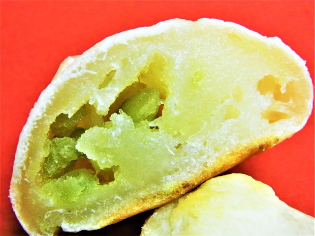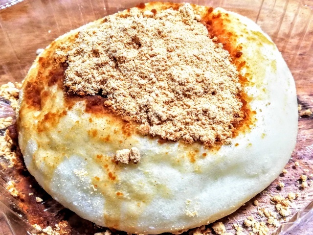ソフトな生地に求肥入りの黒糖フィリングを包み、黒蜜と黄粉で和風仕立てにしました・・・とのコト