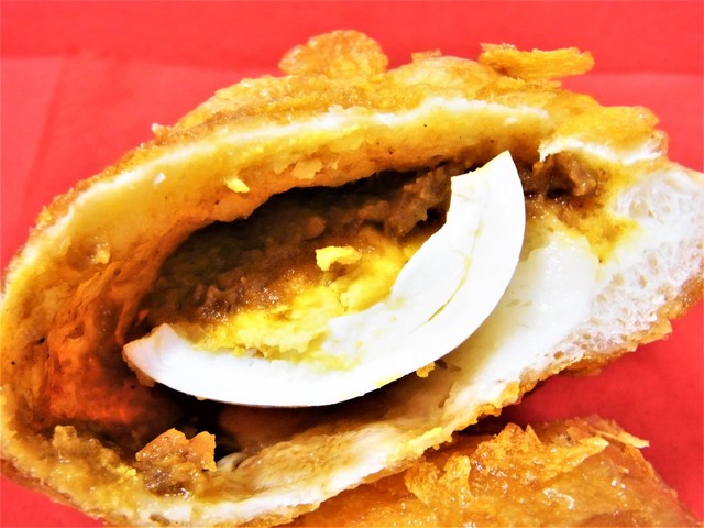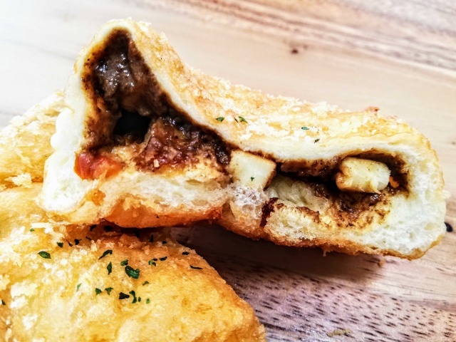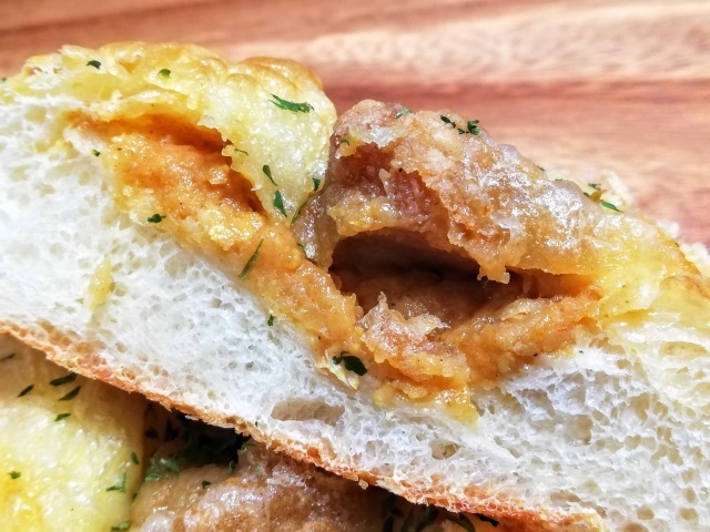 塩パン生地に竜田揚げのはかた地鶏が入った焼きカレーパン・・・とのコト
