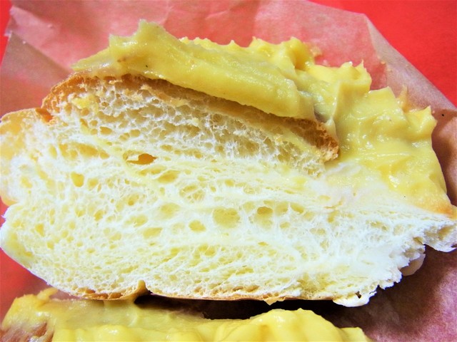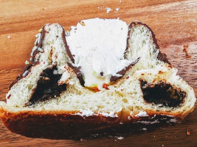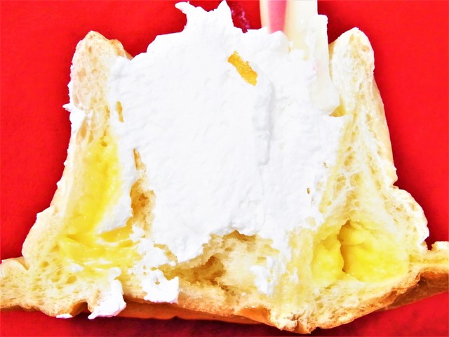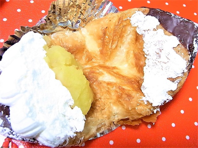 コレもブリオッシュっぽい生地。クリームがたっぷりイン&オン。こってり甘い。でも、ザクザク感が楽しくて、甘いモノ好きさんのオヤツにピッタリ☆