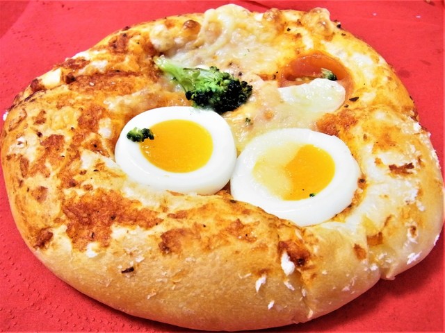 ベーグルと同じように、もともとはポーランドのユダヤ人が食べていたパンとされています。ベーグルのようにゆでる工程がなく、丸く成形して中央をくぼませ、そこに炒めたタマネギをのせて焼き上げるのが一般的。食感はベーグルに比べるとやわらかく、外は香ばしくて、中はもっちり。子どもから大人まで食べやすい、シンプルなお総菜パンといってもいいかもしれません。
