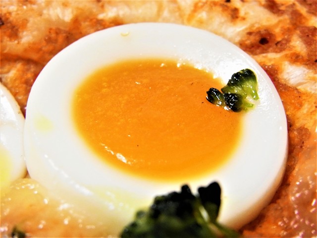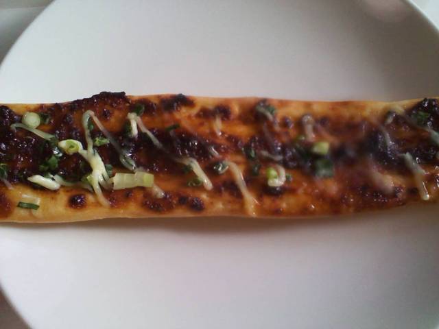 ・中央にくぼみがあり、タマネギのみじん切りがのっている