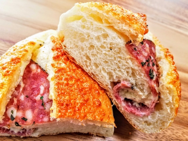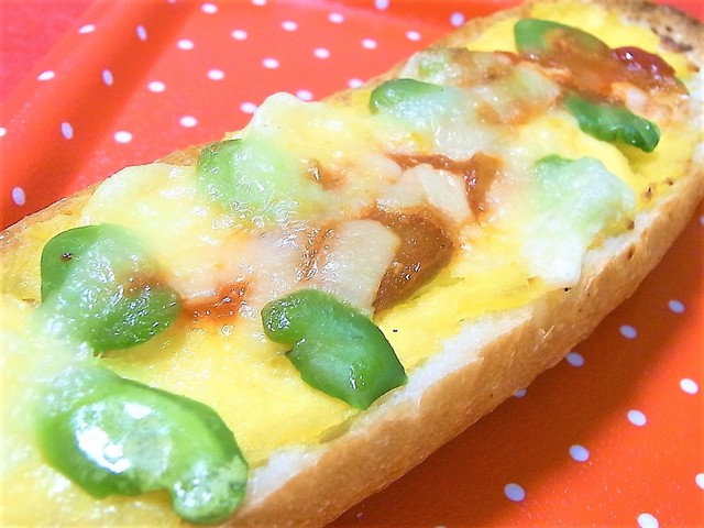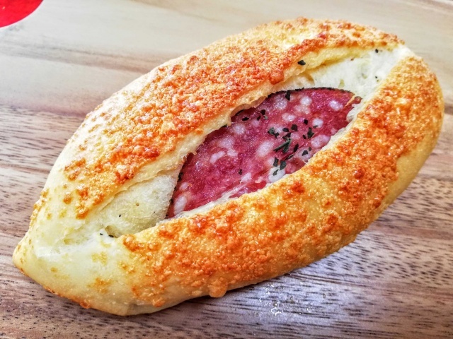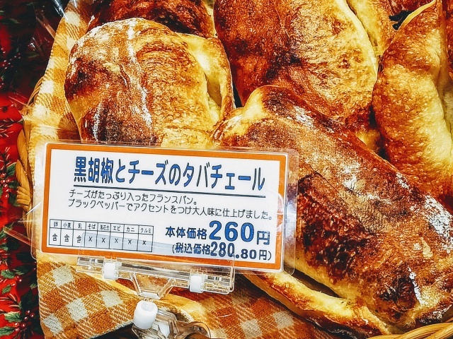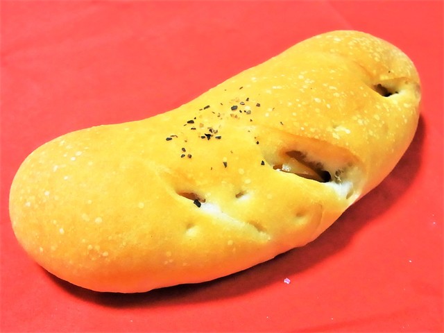 チーズがたっぷり入ったフランスパン。ブラックペッパーでアクセントをつけ大人味に仕上げました。