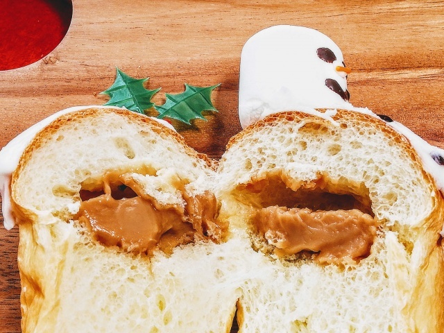 そんなブギーマンスノーマンですが、ブリオッシュっぽい生地の中には甘い生キャラメルクリームがイン。オヤツにピッタリ☆