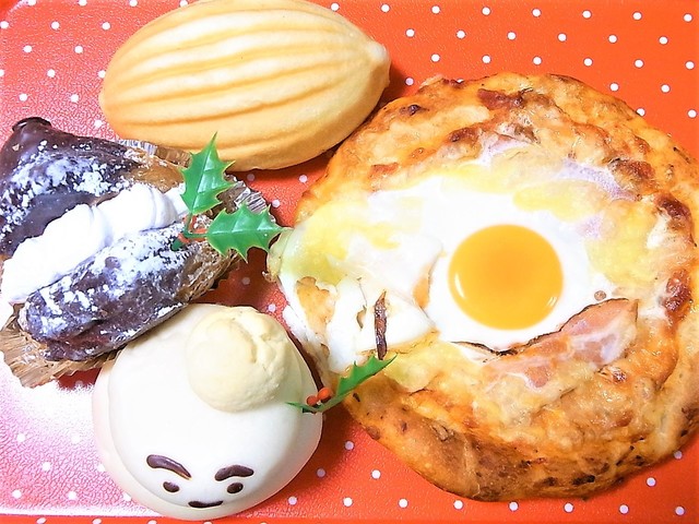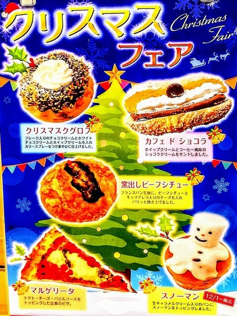 いつもの食パンを買いに高槻阪急地階の【アローム高槻店】に。ちょうどクリスマスフェアをやっていたので、ついでにオヤツ用の菓子パンも購入。
