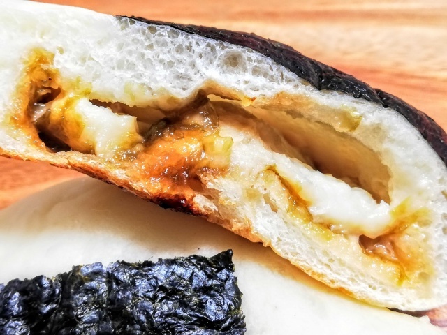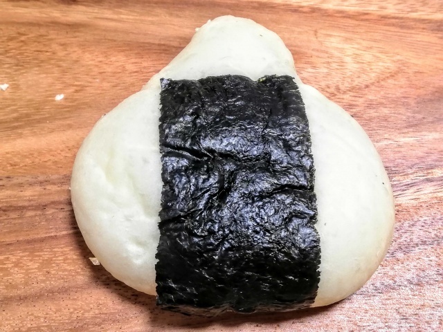 有明海苔フィリングとクリームチーズを包み、おにぎりの形に見立てました・・・とのコト