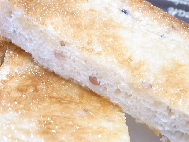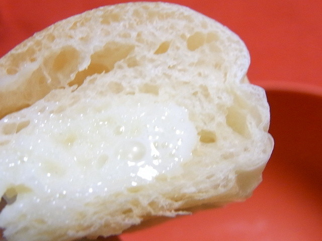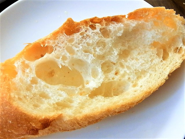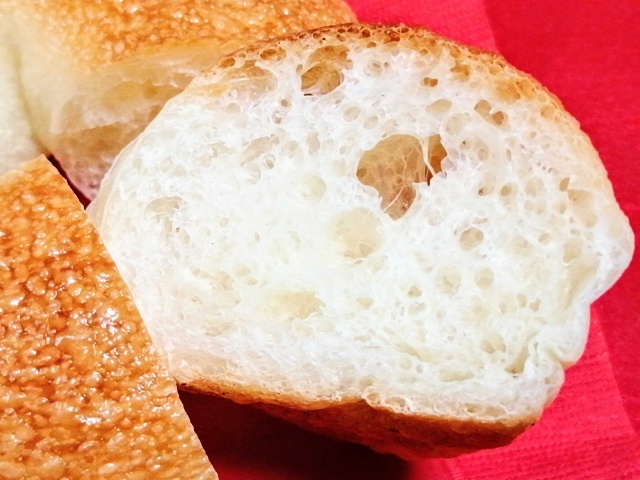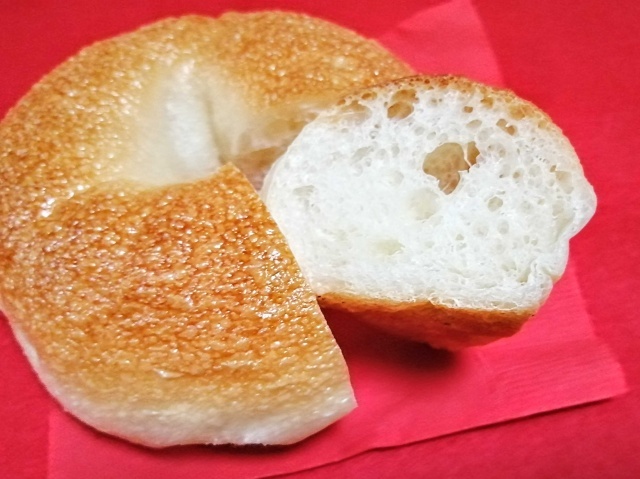 ベーグルのように固くない、というのは内部についてはその通り。モッチリ感もあり美味。表面は少し引きがある。ただ、トーストするとサックリ軽い食感に。