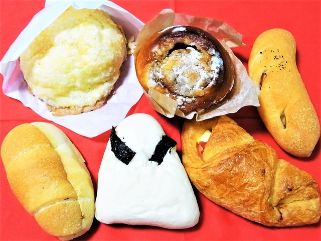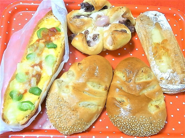 ある日のお家ランチ。スタンプカードと割引券の使用期限の都合で、コチラで調達。5種類6点購入。