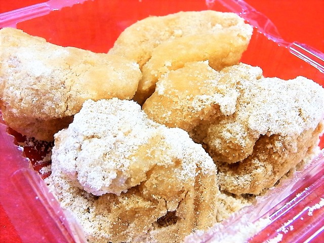 表面がカリサクで、内部はふんわり。砂糖がたっぷりまぶされていて、とはいえ甘過ぎず、噛むと油がじゅわ~ってカンジ。揚げ菓子のお手本のような美味しさでペロリ。