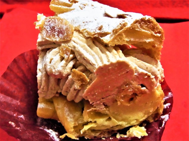 さらには! クリームに包まれているのは栗ではなく、コレまたサクサク・ホロホロしたマカロン?のようなメレンゲ?のような生地。