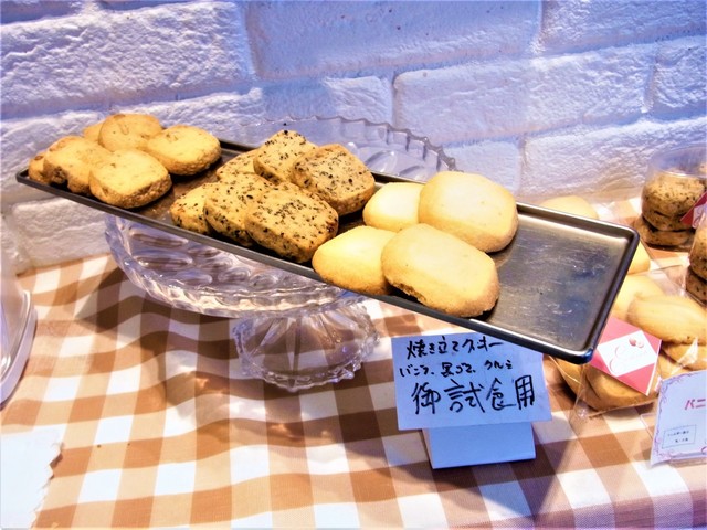無添加の焼き菓子もイロイロ。たまたま、試食を行ってるタイミングだったので、遠慮なく胡麻のクッキーを頂きました。コチラはホワイトデーのプレゼントにピッタリですね☆