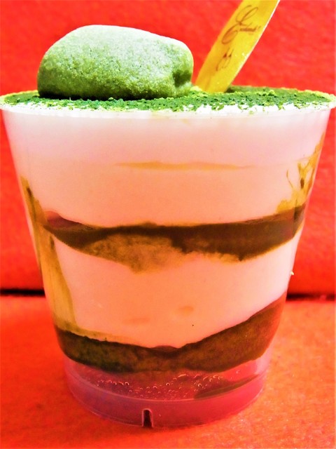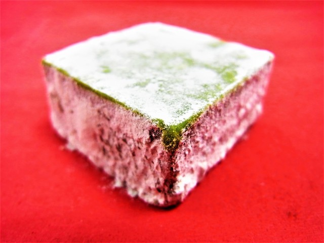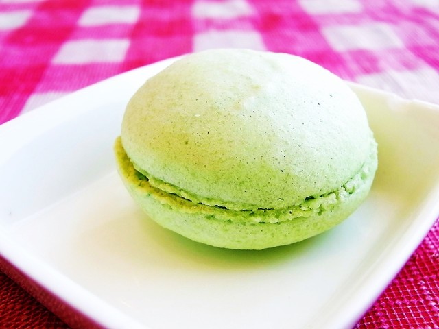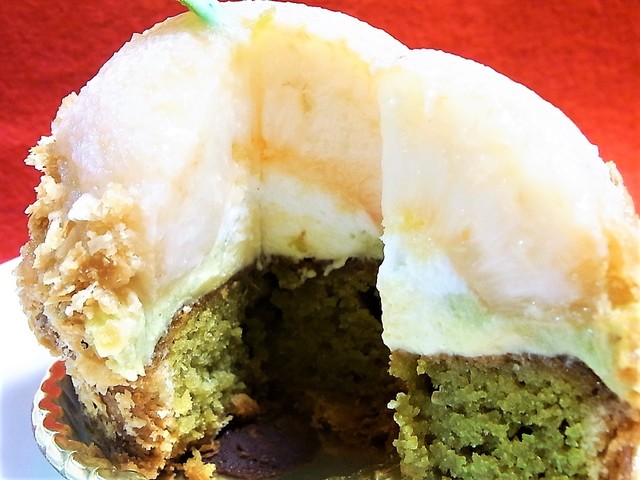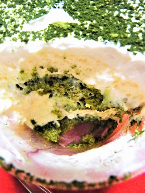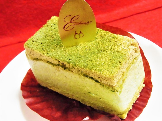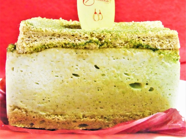 宇治抹茶のざっくりしたブッセみたいな生地で、
