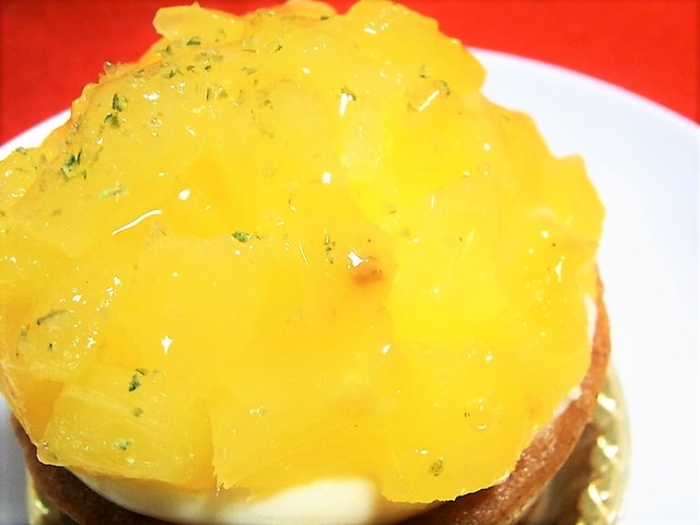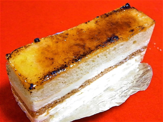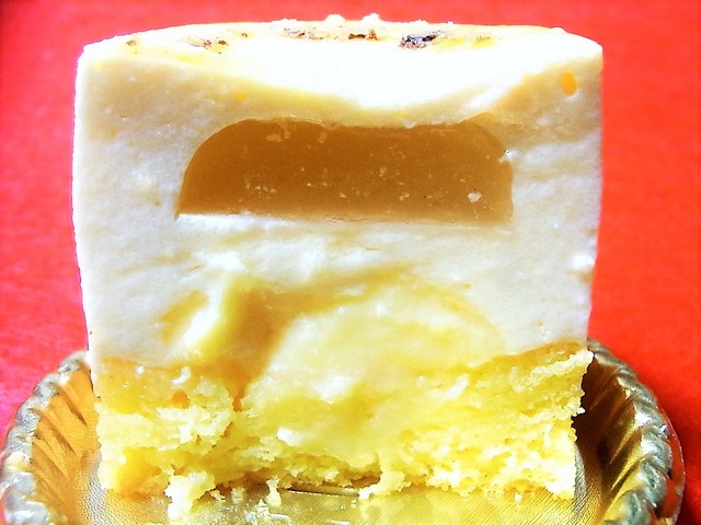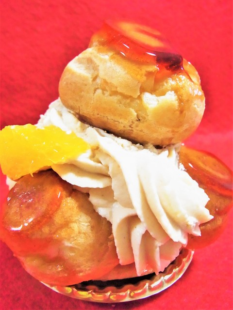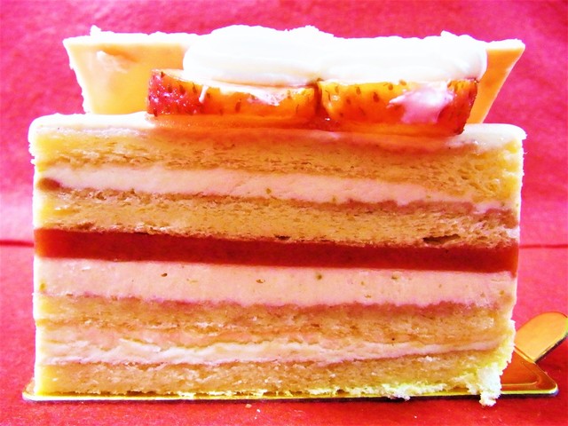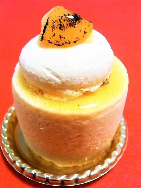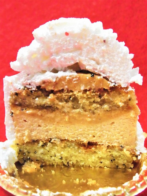 洋ナシのシブーストを、下層にキャラメルのムース?を持ってくるコトで、キャラメル感をアップさせました、みたいな☆