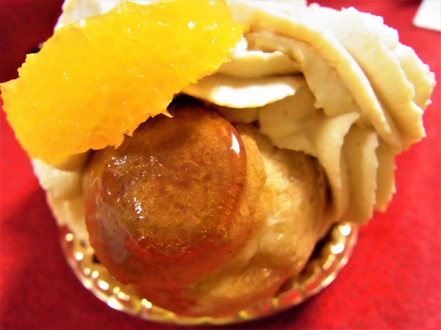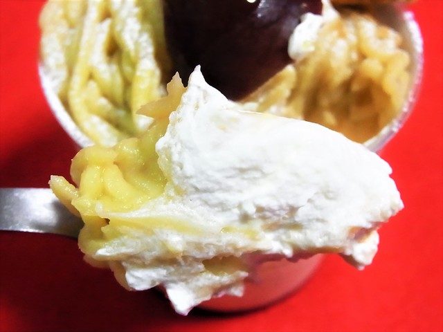 今回は、とけるような滑らかなマロンクリームと、フワフワのホイップクリームに、