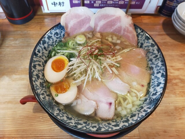 大阪の百名店らしい安定感のある一杯。鶏白湯のまろやかさと醤油豚骨のコクが見事に調和し、濃厚ながら後味はすっきり。炙り角煮と大判チャーシューの存在感も抜群で、スープとの相性も良い。トッピング・麺・スープ...