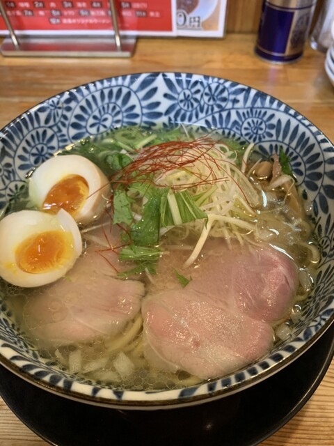 塩が人気みたいですが、今回は中華そば(➕味玉)、半チャーハンセットを注文。