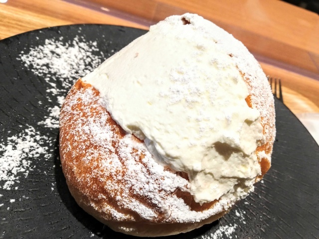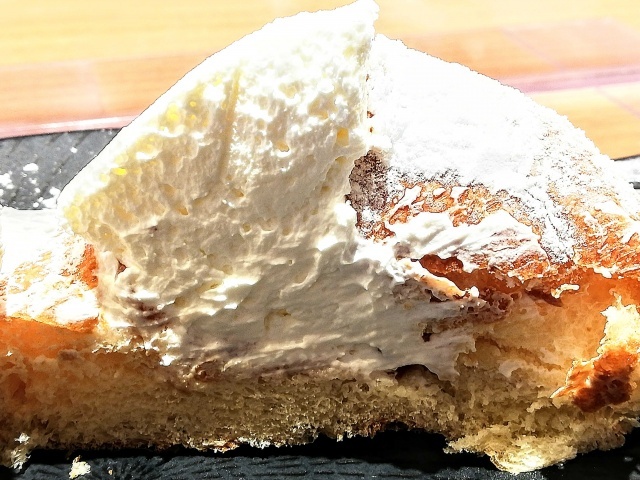ホイップは口の中で即座に液体に戻るタイプ。甘さ控えめでアッサリしてる。写真では分かりにくいですが、ホイップの下にジャムが塗られていて、ほんのりフルーツ感も。