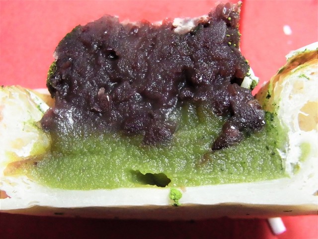 粒あんの下には、なんと!、抹茶あん!!