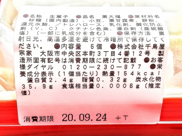 ・・・の5種類。家へのお土産に栗大福を購入。6個入り ¥680 ※3個入りもアリ 1個154kcal