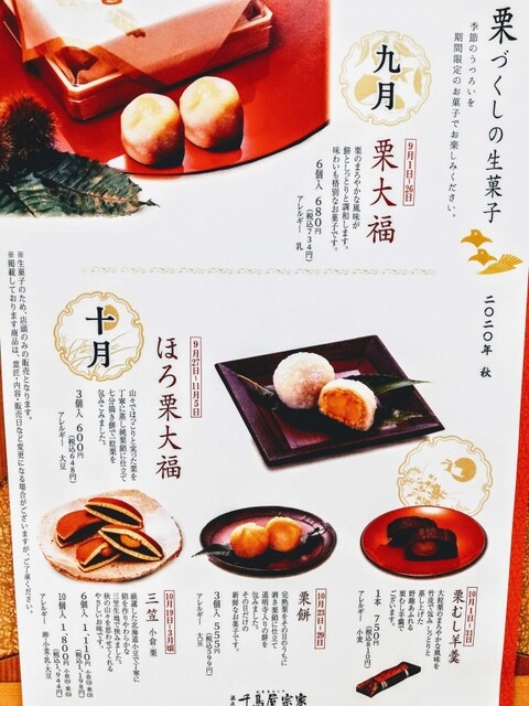 用事でイオン茨木に。ついでに【千鳥屋宗家】さんで秋の和菓子をチェック。