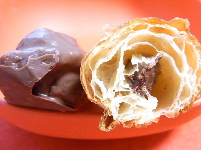 ベルギー産チョコレートが入ったペーストとクリームを使用し、大人の味わいのチョコレートパイに仕上げました・・・とのコト、生地もチョコ味、Wチョコで美味☆