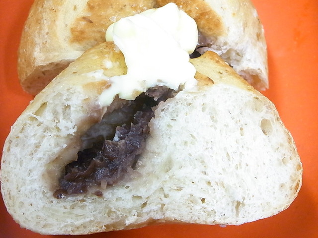 ライ麦入りのさっくりしたパンに北海道産の黒豆を使ったあんこを包み込んで焼き上げ、贅沢なあんぱんに仕上げました・・・とのコト、小豆餡よりアッサリしたカンジ、コレはコレで美味☆