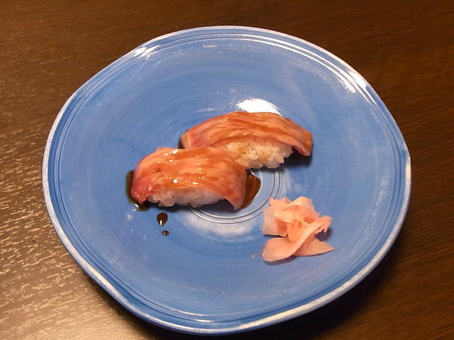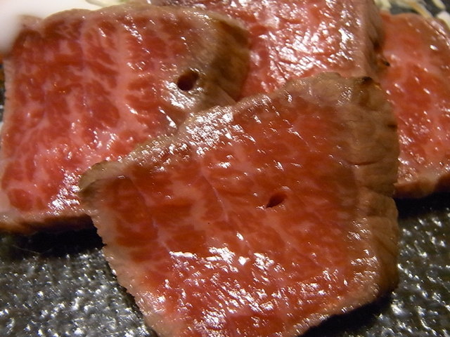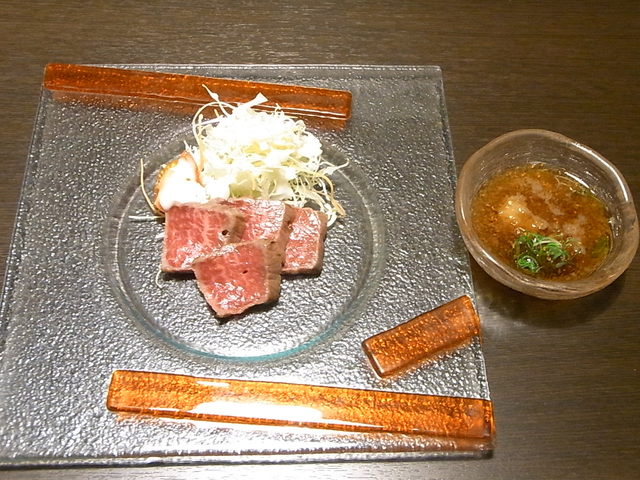 近江牛の刺身 軽~く炙られて板状の氷の上にON♪