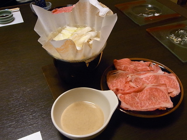 近江牛会席¥8000 付き出しは鯛ポン酢と河豚皮の湯引き♪