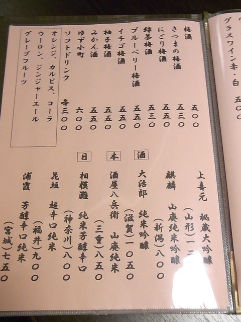 地酒は7種類¥750~1200、ソフトドリンクは6種類¥300♪
