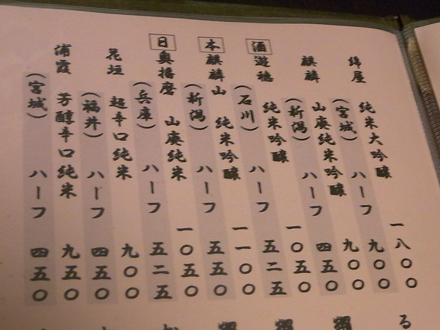 課長)新潟 麒麟山 純米吟醸 ハーフ¥550 だったかな?