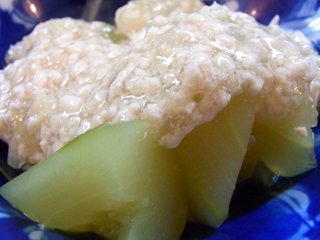 出汁を煮含めたズッキーニにタップリの鶏そぼろあん。