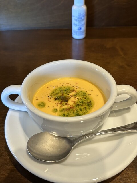 ランチメニューは、前菜とスープ、メインが1品か...